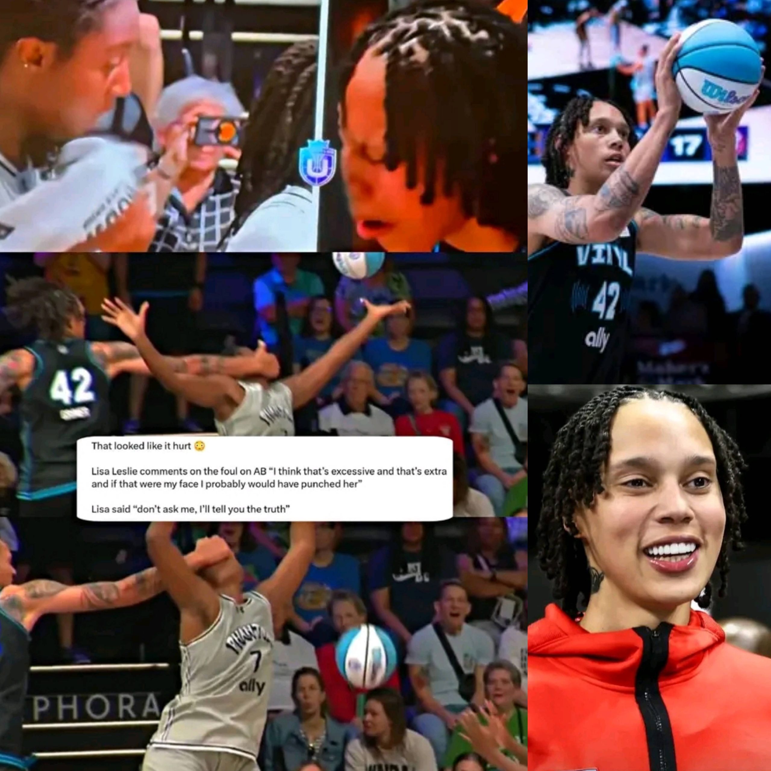 Legendary WNBA player and analyst Lisa Leslie reacted strongly on the broadcast, calling the foul “excessive and extra.” She emphasized that the arm extension went beyond a normal basketball play, scraping across Boston’s face, and remarked, “I think that’s excessive and that’s extra and if that were my face I probably would have p*nch*d her.” The play drew widespread criticism online, with fans and commentators noting Griner’s history of physical altercations with Boston, including past WNBA shoves and technical fouls.
